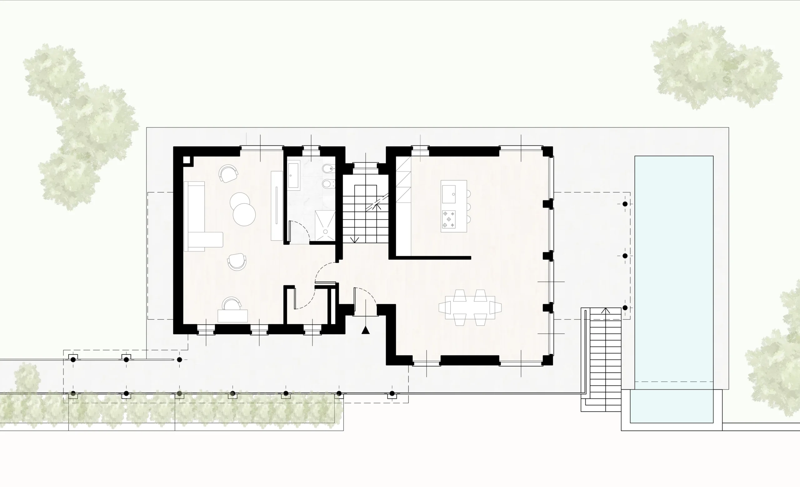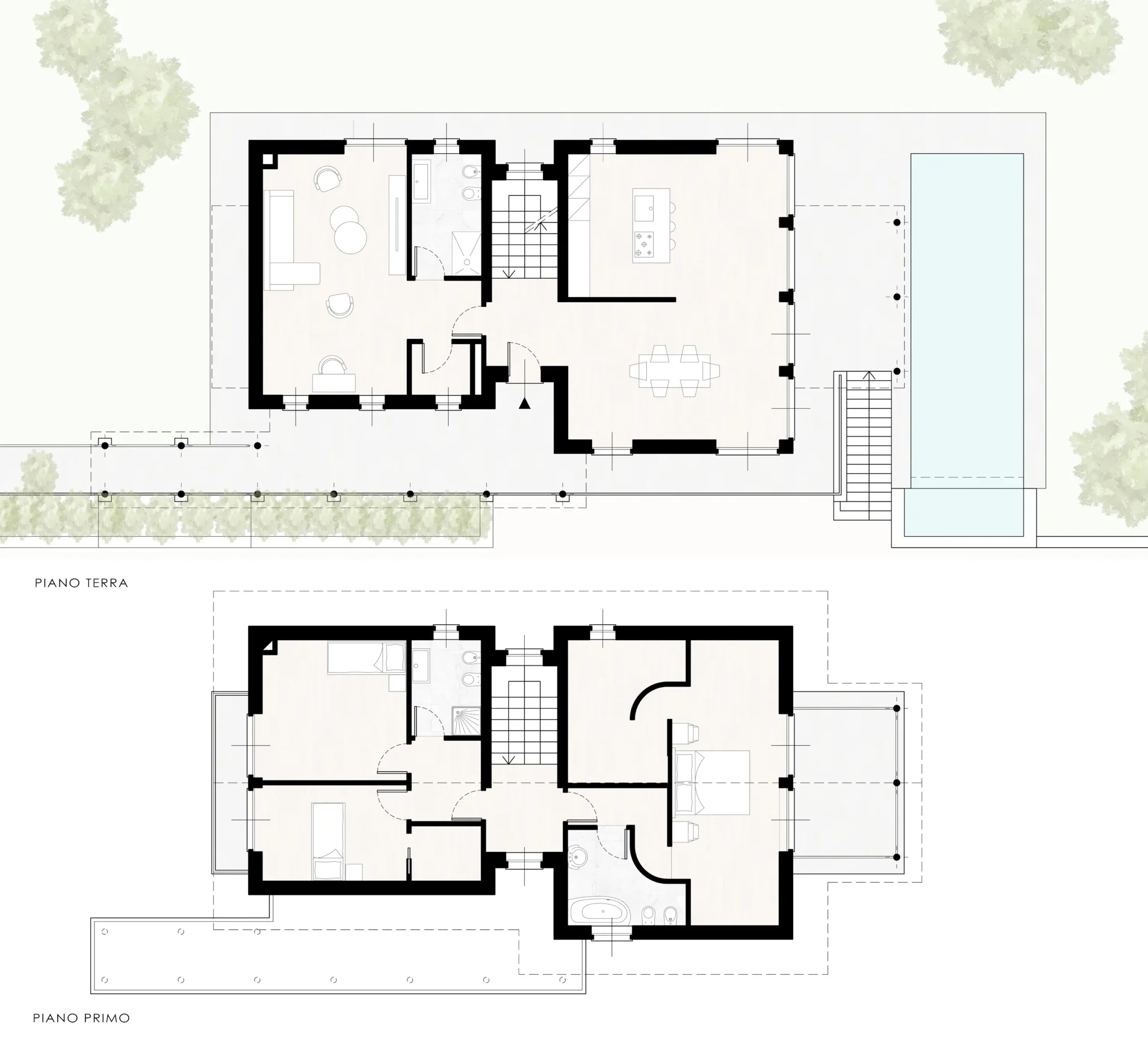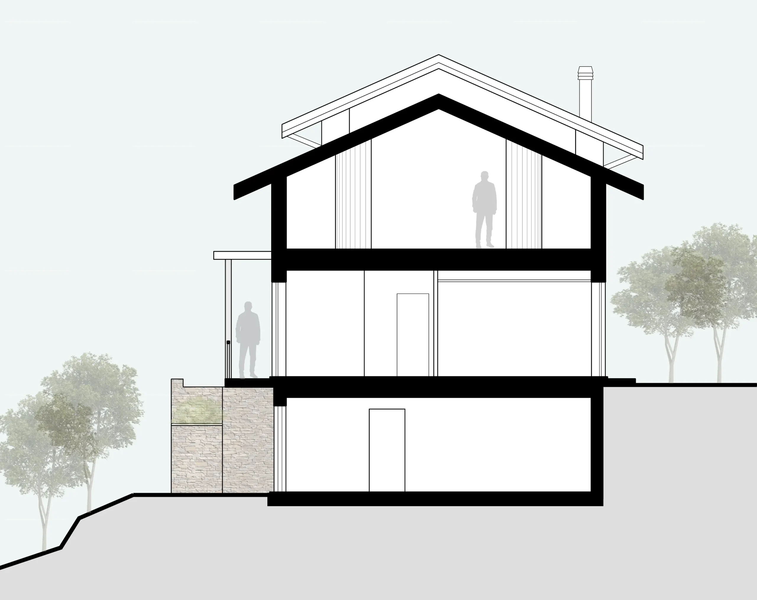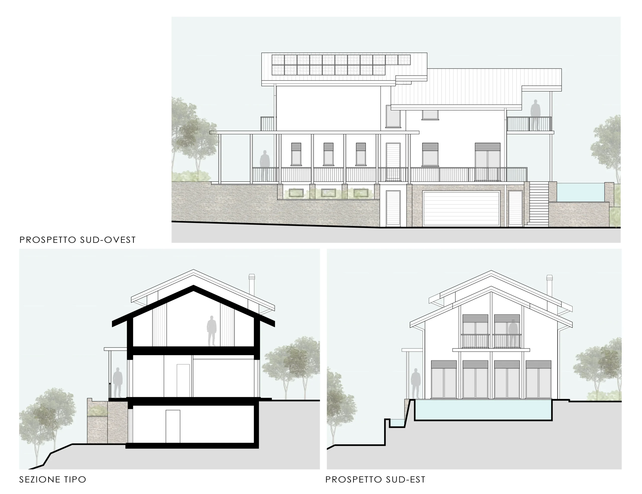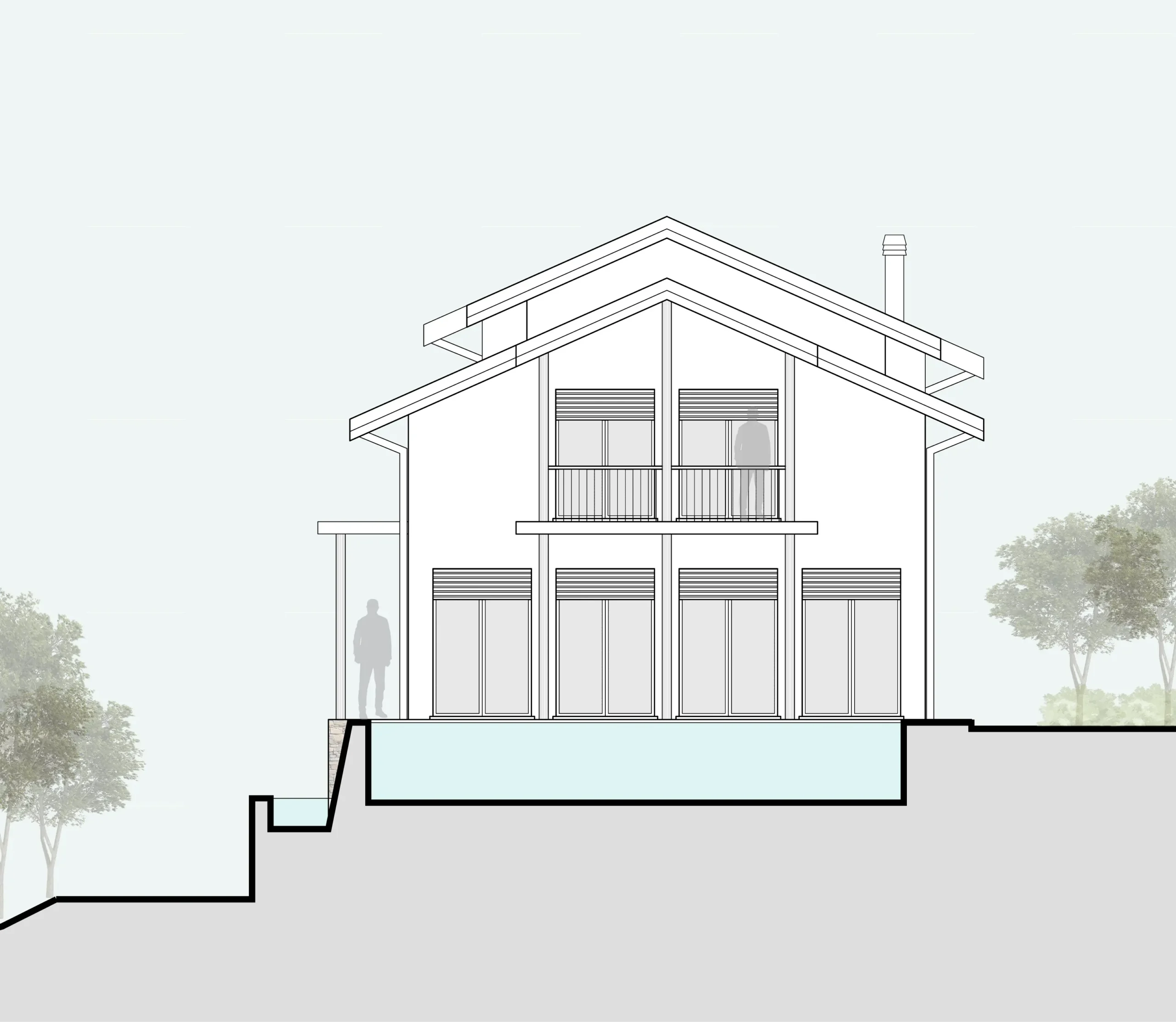 il progetto nasce dall’idea di realizzare un edificio monofamiliare che si collochi in armonia con l’ambiente rurale circostante; caratterizzante è la morfologia del terreno che modella la conformazione di prospetto del fabbricato e la collocazione delle ambientazioni che si creano dando risalto alle visuali verso la prateria ed il bosco circostante.